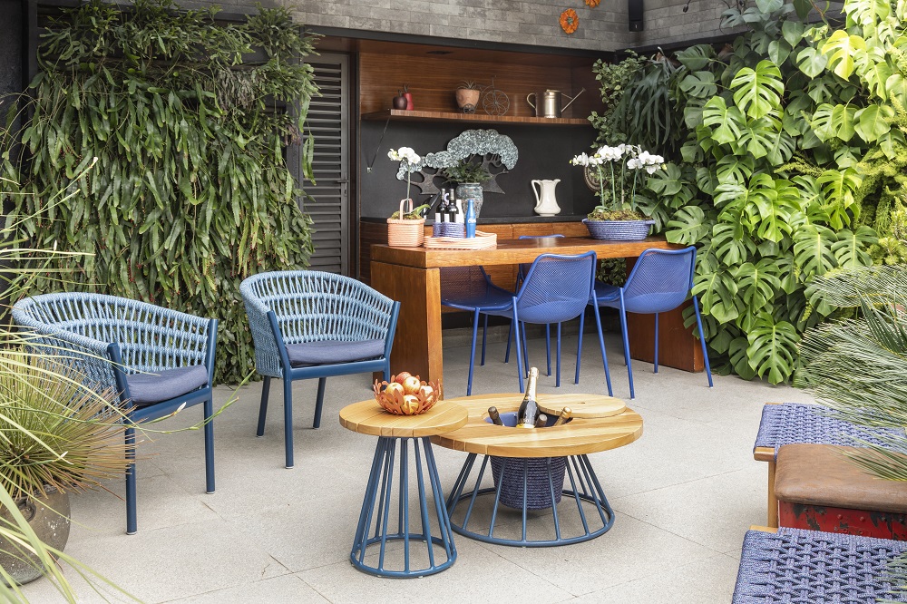 De acordo com Luciano, as peças em corda náutica são as mais resistentes, motivo pelo qual são tão populares nos espaços abertos. E é extremamente importante que elas tenham uma estrutura firme, pois ficarão expostas ao clima. O tecido Quacker, bastante duradouro, é outra dica do paisagista.
