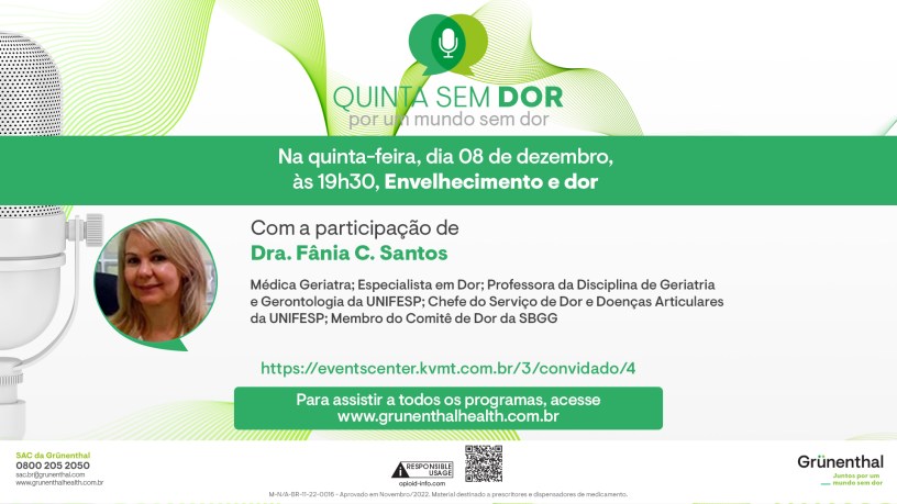 A Grünenthal Brasil lançou em Outubro, mês internacional de combate à dor, o webcast “Quinta sem Dor”.