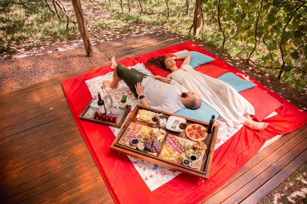 Sozinhos no vinhedo, os visitantes podem curtir o Edredom nos Parreirais de forma privativa com toda exclusividade que a experiência proporciona.