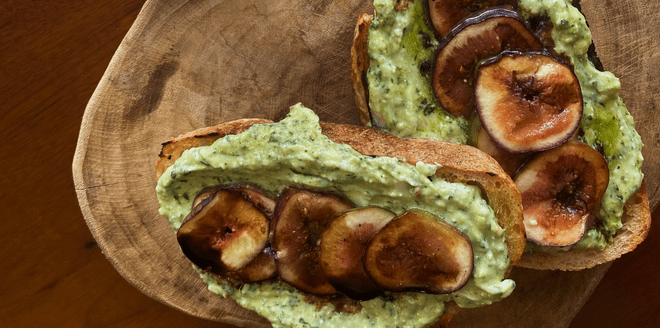 7º passo: Para montar, coloque a pasta que se formou nas fatias de pão e os pedaços de figo selado.