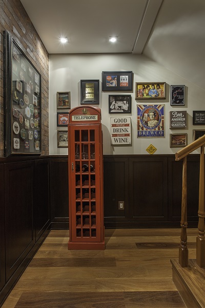 Inspirado no clássico pub britânico, o ambiente estende seu simbolismo até nas paredes, onde quadros temáticos reunidos pela família ao longo dos anos trazem ainda mais personalidade ao espaço descontraído | Projeto: Paiva e Passarini – Arquitetura | Foto: Leandro Farchi