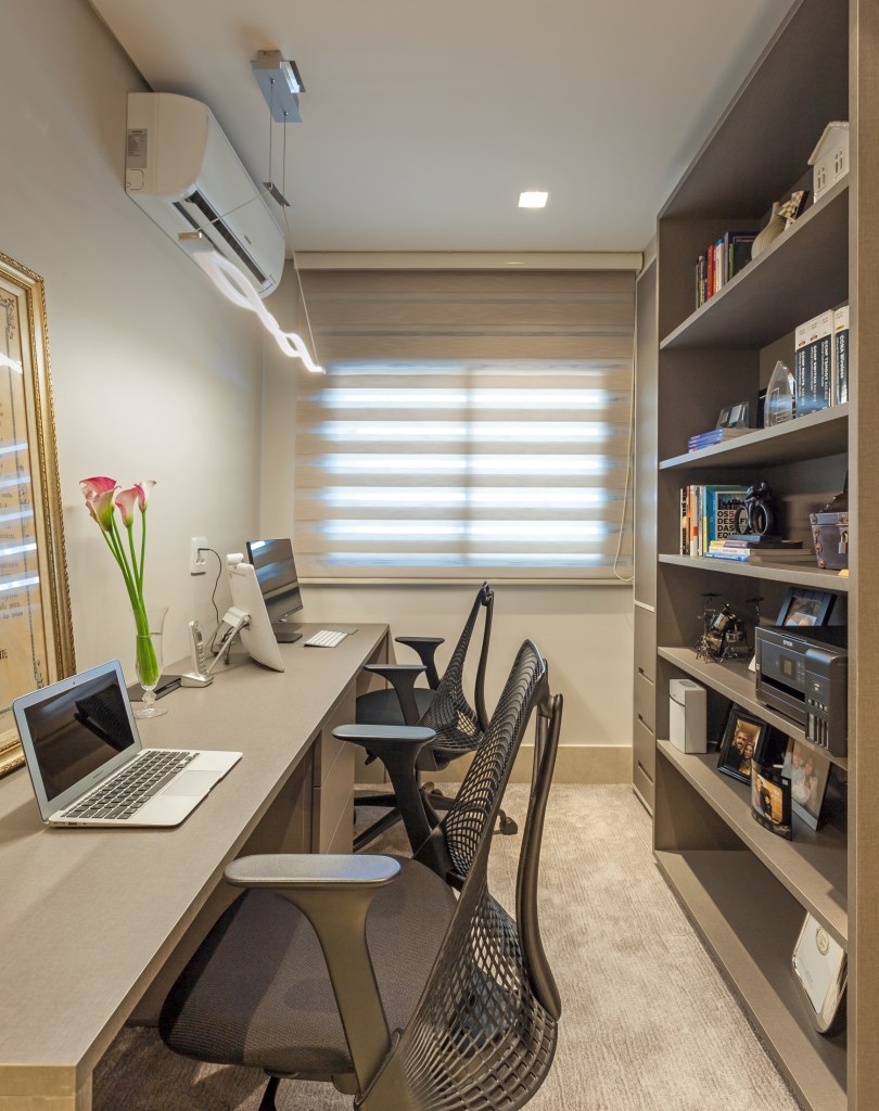 “Projetar um home office em conjunto tem como intuito justamente aproximar o casal. A rotina diária de trabalho é exaustiva e ter ao seu lado uma pessoa amada pode ser muito benéfico para a relação”, diz a especialista.