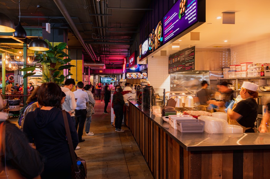 Esse empreendimento, inspirado nos tradicionais hawker centers (mercados de rua) de Cingapura e que abriu as portas em setembro de 2022 na vizinhança da agitada Times Square, veio para quebrar a hegemonia da culinária europeia que imperava entre os mercados abertos recentemente. São 17 pontos de venda de comida, 11 deles vindos diretamente de Cingapura e que, à parte os pratos típicos desse país, também passeiam pelas iguarias de outros povos que compõem o caldeirão cultural que forma Cingapura: malaios, chineses, indianos e peranakans (resultado da mistura entre os primeiros imigrantes chineses que se estabeleceram em áreas como Penang, Malaca, Cingapura e Indonésia e que se casaram com malaios locais). Seja pelo visual do mercado, pelo público e, claro, pelas comidas servidas, o complexo transporta os visitantes para um autêntico mercado de rua de Cingapura, onde bons pit stops são o cingapuriano Hainan Jones, para provar o famoso arroz de frango Hainanese; o filipino Tradisyon, que tem no adobo de porco (composto por uma carne assada até a textura perfeita e que vem ensopada em um molho à base de soja com alho) uma escolha certeira; e o malaio Padi D’NYC. Nesse quiosque, suas prioridades devem ser o longtong (bolinhos de arroz servidos servido em uma tigela de curry de coco cremoso, acompanhados de batatas, bolinhos de peixe e ovos cozidos), o gulai de frango e o satay de frango defumado. É tudo colorido, temperado com muitas ervas e especiarias e diferentemente delicioso.