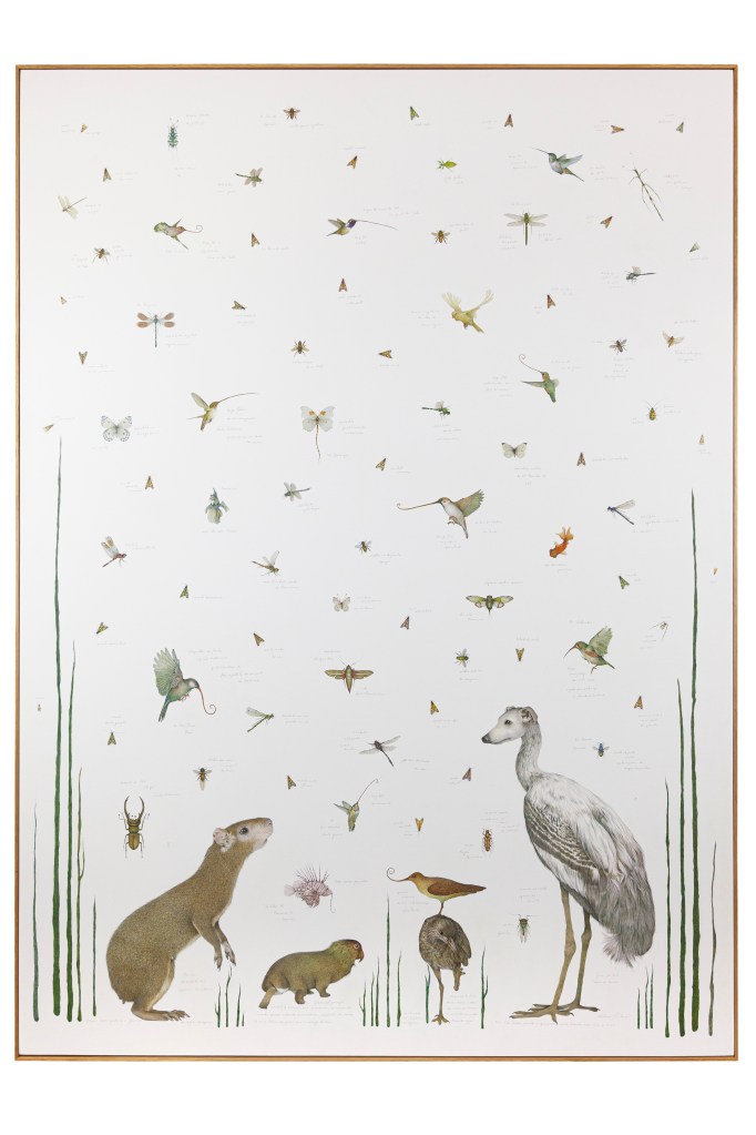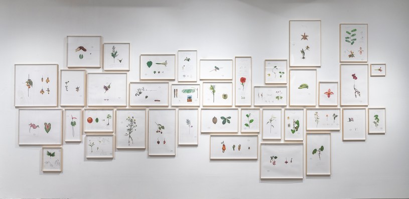 Em seu repertório, fabulação e ciência evocam o imaginário nacional associado a plantas, animais e espécies híbridas que trafegam entre a realidade e o onírico, como figuras de aves com cabeças de roedores e plantas com funcionalidades e nomes curiosos.