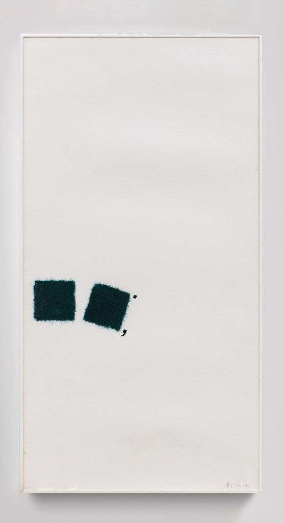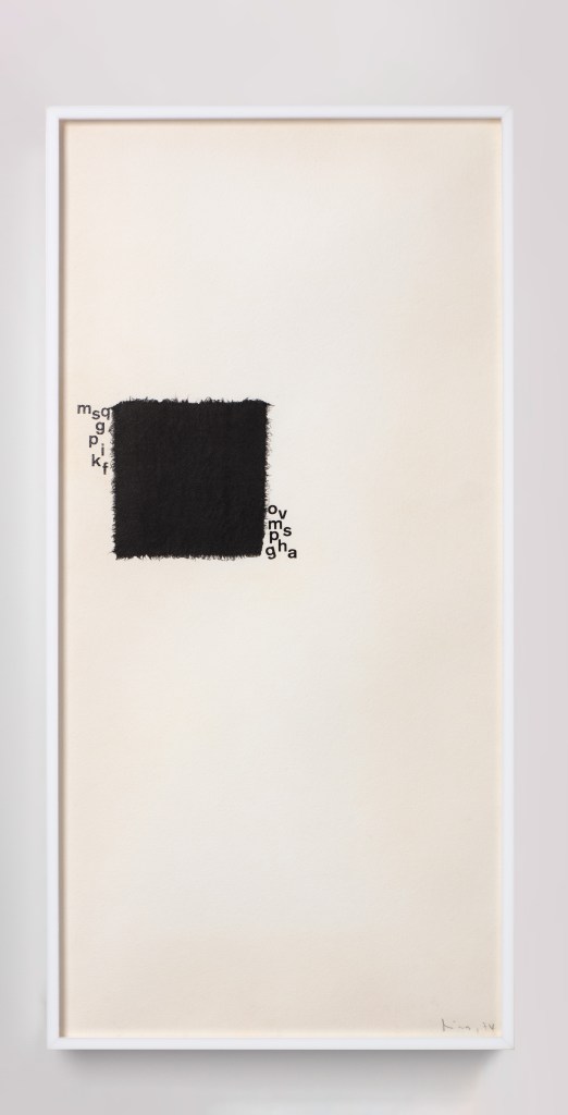 Após ter sido presenteada pelo amigo Mario Schenberg, crítico de arte e importante físico brasileiro, com uma enorme quantidade de papel de arroz japonês, Mira criou cerca de dois mil desenhos que compõem a série Monotipias, produzida principalmente entre 1964 e 1967. Ao continuar experimentando com esse material, criou outras séries, como os Objetos Gráficos, produzidos sobretudo entre 1967 e 1973. São trabalhos compostos por folhas de papel de arroz repletas de rabiscos, traçados, rasuras, tipos datilografados e letraset inseridas entre duas placas de acrílico suspensas por fios de nylon e dispersas no espaço, longe das paredes, jogando com a luz, o dentro e o fora, a frente e o verso. Progressivamente, o desenho, a escrita cursiva e a rasura passaram por um processo de síntese no trabalho de Mira, chegando ao que o ensaísta alemão Max Bense chama de “reduções gráficas”. As obras da série Toquinhos apresentadas nesta exposição demonstram bem esse processo.