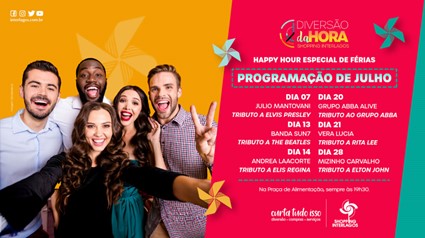 Um dos períodos mais aguardados do ano está chegando: férias escolares! E para quem busca uma programação com música boa, conforto e a disposição de uma Praça de Alimentação completa, o Shopping Interlagos preparou a programação do seu tradicional Happy Hour para o mês de julho.