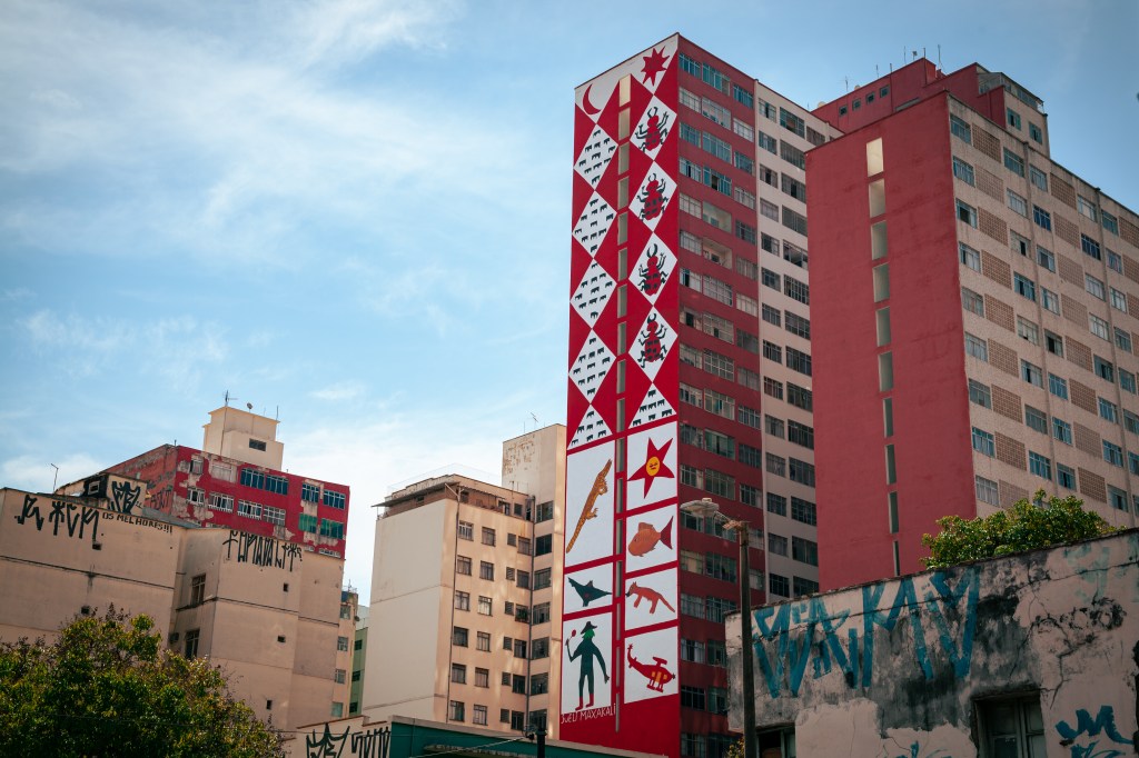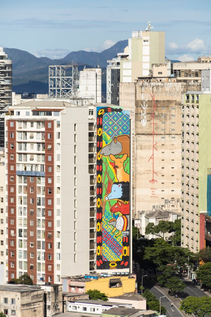 A obra também carrega mais um marco histórico: é a maior obra de arte pública contemporânea indígena com 1.006 m². Ela está no Ed. Levy, na Av. Amazonas.
