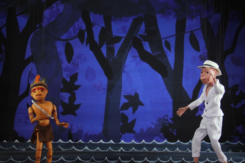 ONHEAMA significa “eclipse” em língua tupi. Através do encanto das marionetes de fio e da música, o espetáculo conta a história épica de Iporangaba, um jovem guerreiro indígena, que precisa resgatar o sol, que foi engolido pelo terrível onça Xivi.