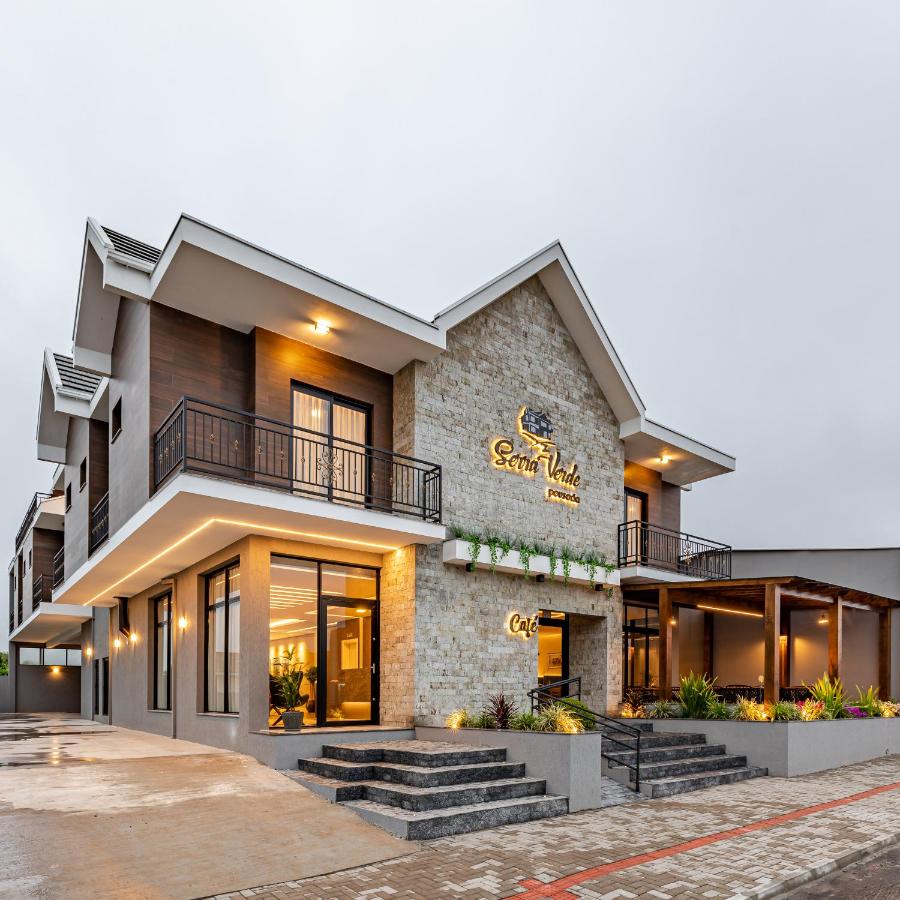 Quem visita o destino pode se hospedar na Pousada Serra Verde, que oferece apartamentos com dois quartos e tomou medidas para deixar a estadia mais sustentável.