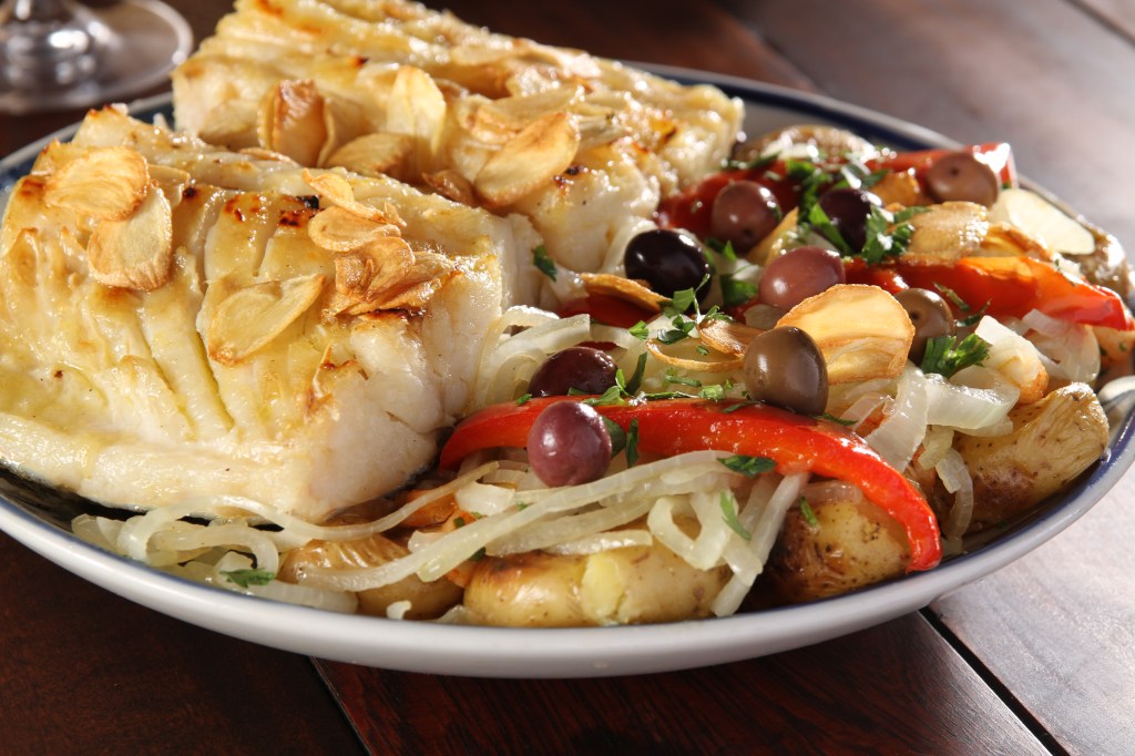 Entre os pratos da casa, o Bacalhau à Lagareiro (366 reais para duas pessoas) é um dos grandes destaques do menu. A receita serve duas pessoas e é elaborada com posta de bacalhau, batatas aos murros, cebola, páprica, alho, salsinha e pimentão vermelho puxado no azeite.