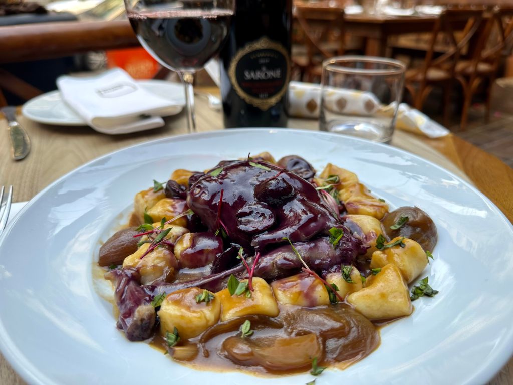 Para harmonizar, uma extensa carta de vinhos privilegia em 50% a Itália e suas regiões. O sommelier da casa seleciona o rótulo adequado a receita para que a harmonização se torne uma memorável experiência.