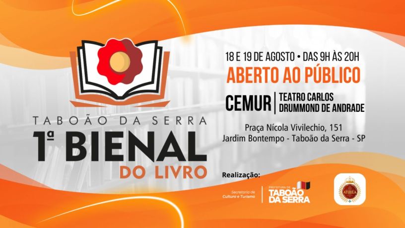 A cidade de Taboão da Serra recebe um dos eventos literários mais aguardados do ano: a 1ª Bienal do Livro, organizada pela renomada Academia Hispano-brasileña de Ciencias, Artes y Letras (AHBLA) em parceria com a Secretaria Municipal de Cultura.