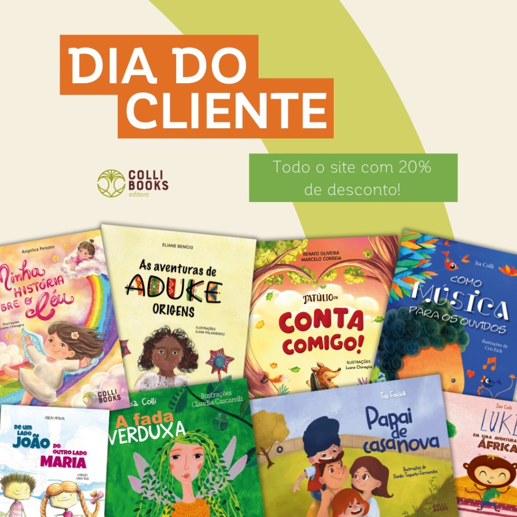 A Colli Books Editora, editora independente, com foco na literatura infantojuvenil e um forte trabalho pedagógico direcionado às escolas realiza uma campanha de desconto com 20% em todo seu acervo. A ação tem como objetivo incentivar e estimular a leitura entre os pequenos e, com isso, fortalecer o desenvolvimento infantil, além de atrair um novo público. Os livros podem ser adquiridos no site da editora: http://www.collibooks.com.br/