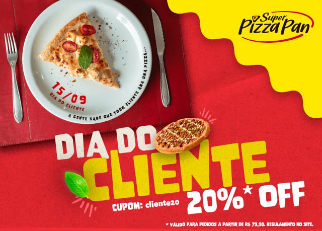 A rede conhecida como a pizzaria dos chefs, irá oferecer um desconto de 20% para os clientes que fizerem pedidos de valor igual ou superior a R$79 através do link https://superpizzapan.wabiz.delivery/ ou pelo aplicativo da Super Pizza Pan. Para ter acesso ao benefício, basta utilizar o código promocional exclusivo “cliente20” durante o checkout. Promoção válida somente no dia 15 de setembro de 2023. Você pode escolher entre retirar o seu pedido na loja ou receber a entrega em sua casa.